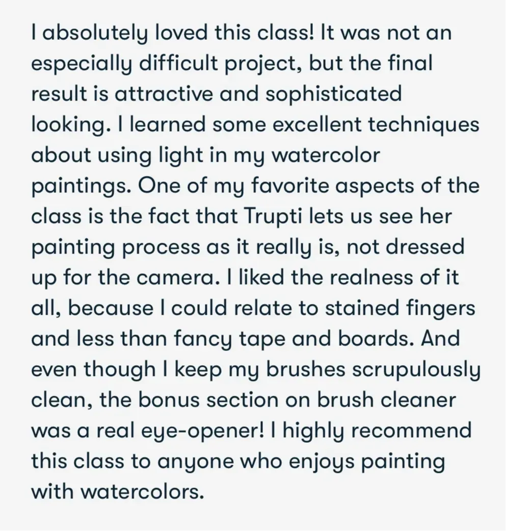 ✔ You’re good with beginner watercolor techniques but you are confused on how they all come together to make a sophisticated painting