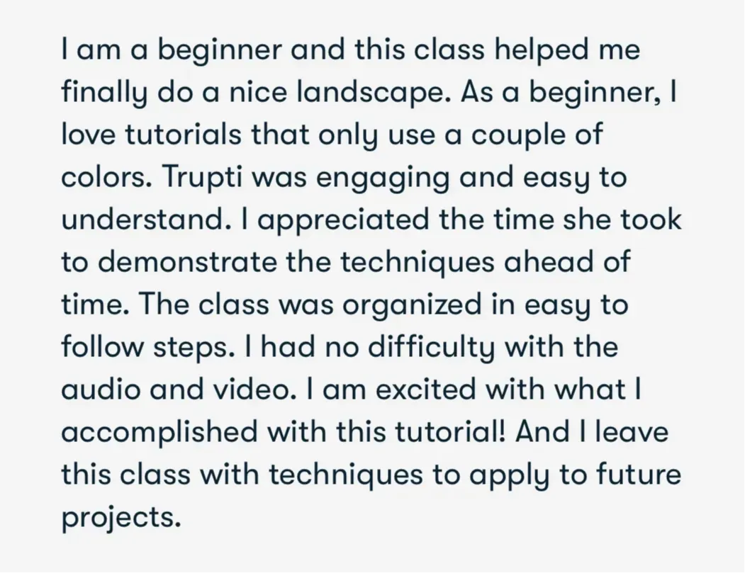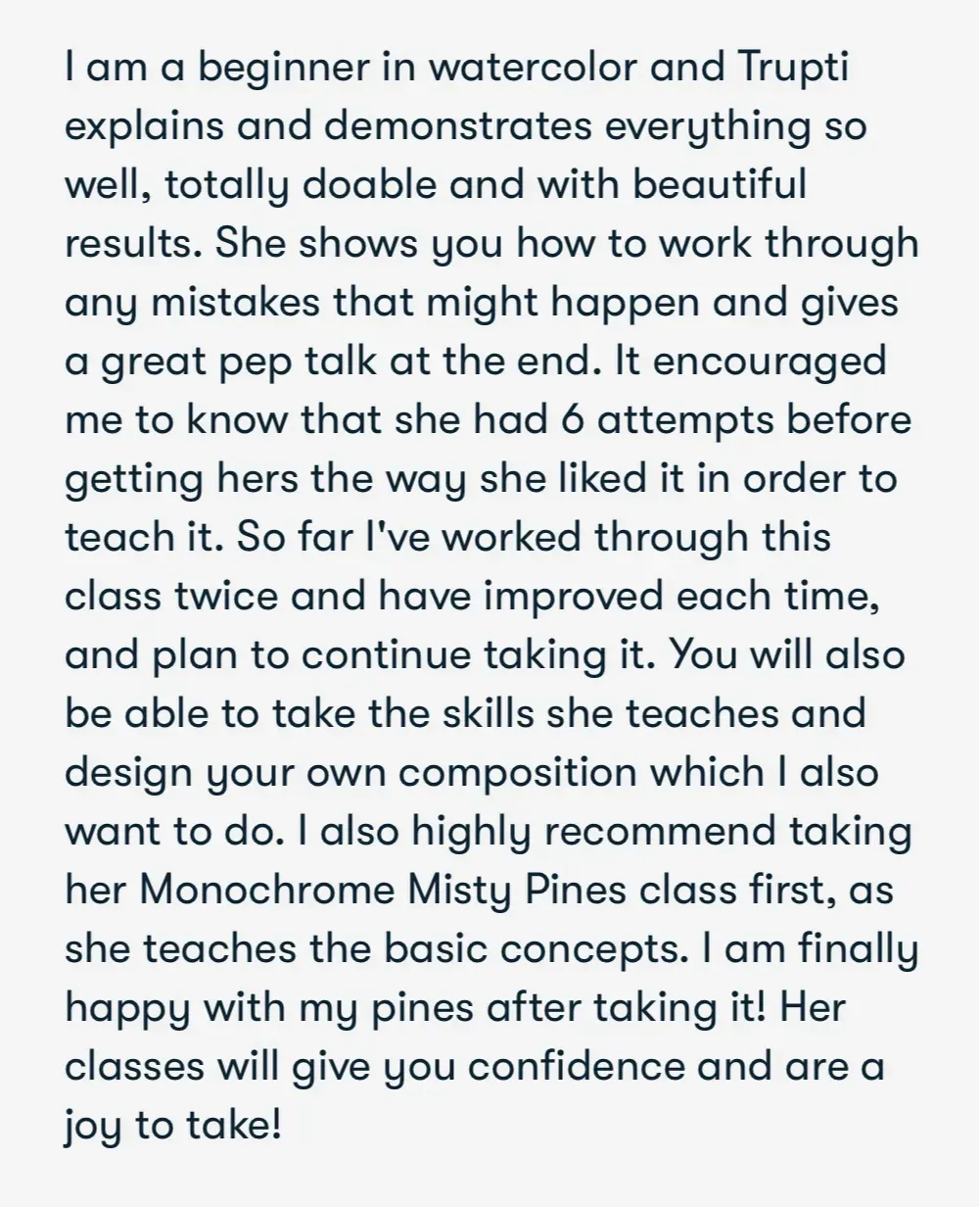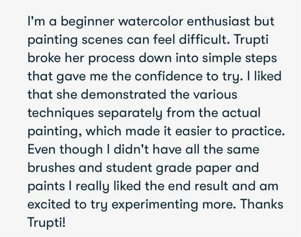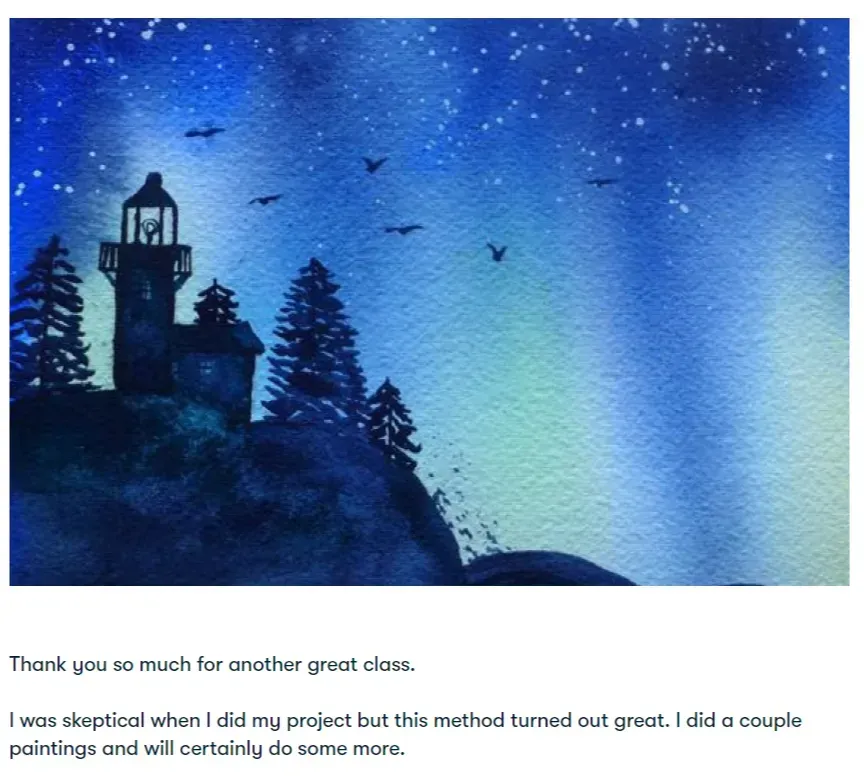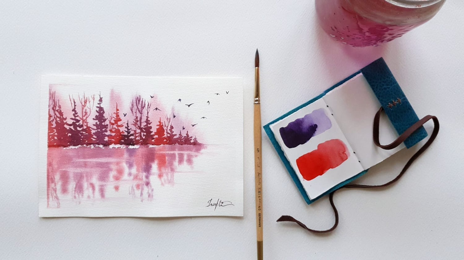 ✔ You want a quick watercolor class (less than an hour) with an immediate reward of a polished-looking expressive landscape in your hand by the end of it