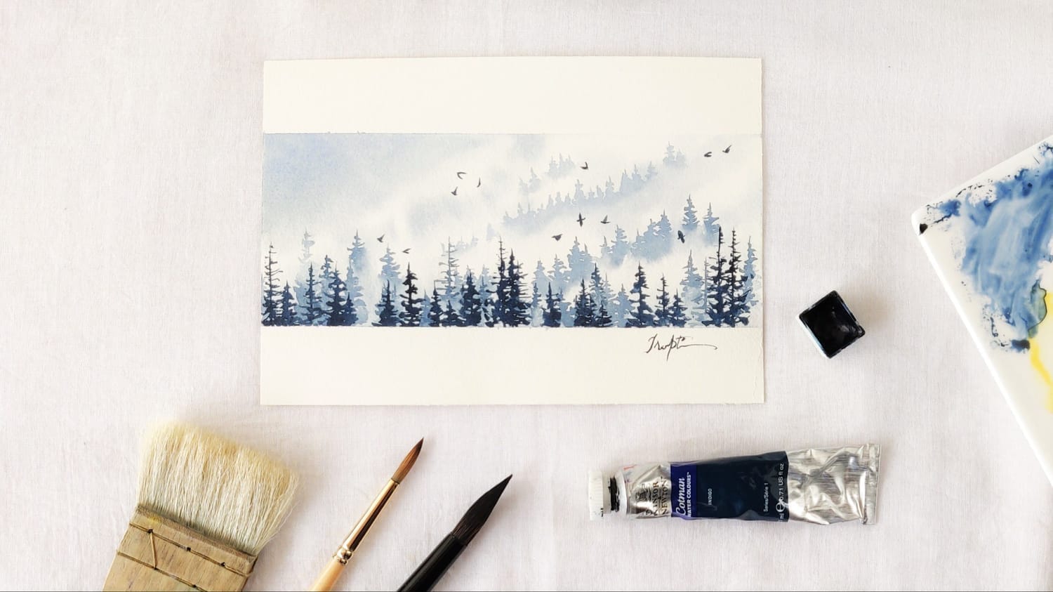 Master the simplicity of foggy pine forests with just ONE color and my signature techniques that highlight transparency, depth, and ethereal atmosphere.
