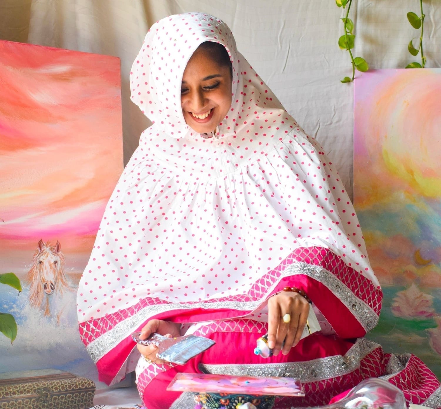 Sakina perceives art to be her gateway to a different world, one of quiet contemplation - a welcome respite from a busy, sometimes overwhelming city. This conflicting set of habits has come together to form the identity and ongoing narrative of her art. Her flow comes from the juxtaposition of the world outside and the world within and that’s what she aims to explore through her art.